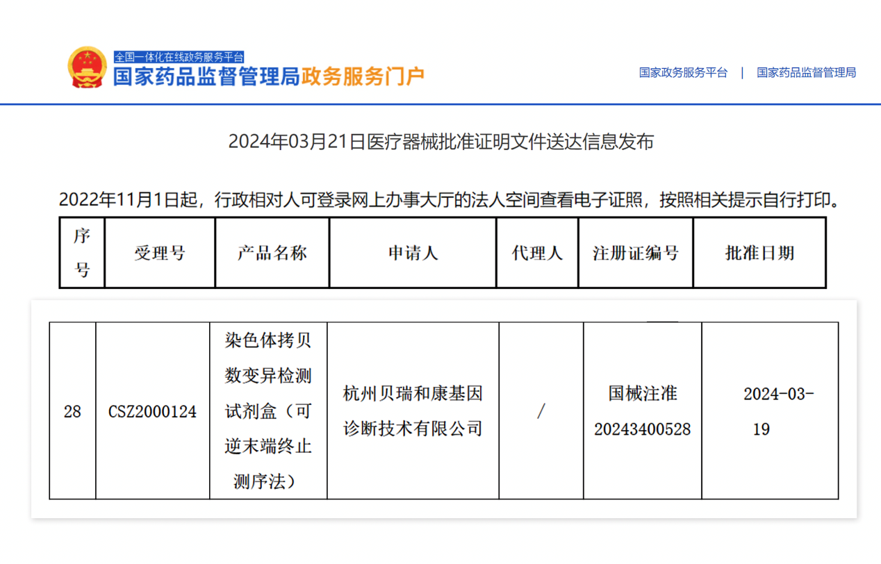 貝瑞基因CNV-seq檢測試劑盒獲國家藥品監(jiān)督管理局(NMPA)批準(zhǔn)上市!